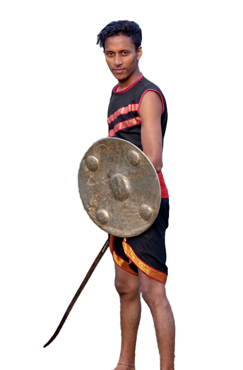 Wooden and metallic weapons training include short and long sticks, dagger, sword, shield, spear, mace and knife. It helps the student to gain mental courage, confidence, concentration, physique, and aggression.