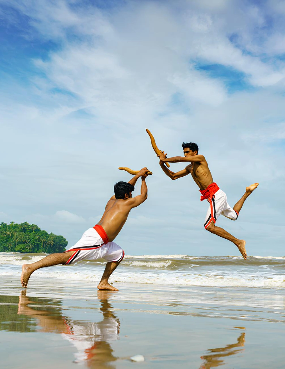 Hands training in Kalarippayat include different type of hand movements. It makes the hand powerful, gives control over the hand movements, flexibility to the wrist, strength and proper co-ordination.